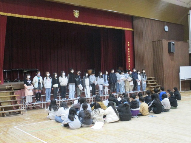 学習の成果報告は、これまで自分たちを育ててくれた保護者の方への感謝や、5年生での抱負なども交えた発表でした。