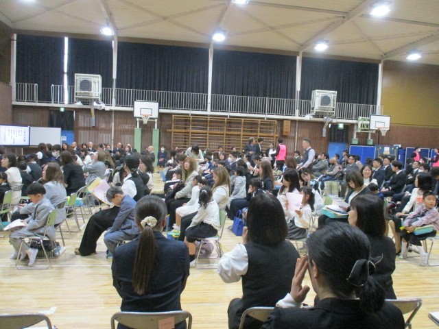 受付時刻である9時を待たず、期待を膨らませた新1年生の子どもたちが続々と体育館前に並び始めました。お家の方に手を引かれ、恥ずかしそうに挨拶をする1年生、元気いっぱいお家の方を振り切って走りながらやってくる1年生。今年もたくさんの表情、たくさんの出会いがあった入学式でした。新1年生のみなさん、ご入学おめでとうございます。
