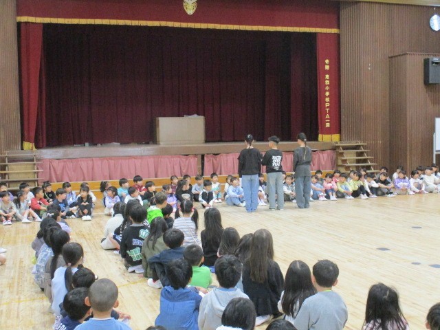 一昨日入学してきた59名の新1年生の子どもたち。今日は2年生~6年生までの先輩たちと出会う「対面式」を行いました。
