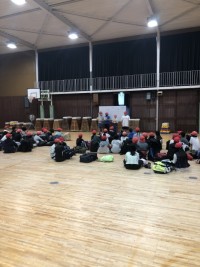 今日の給食は、ハヤシライス・はくさいサラダ・牛乳・ハート型オムレツ・チョコクレープでした。