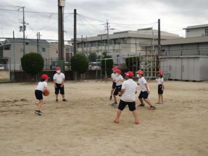 バスケットボールクラブです。このクラブもグループに分かれてパス練習やミニゲームをしていました。