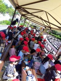 待ちに待ったお弁当の時間です。やっぱ遠足っていいなぁ!とニコニコです、