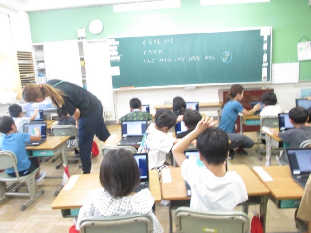 2学期が始まって、もうクロームブックを使ったり、カタカナを習ったりとがんばる1年生。
