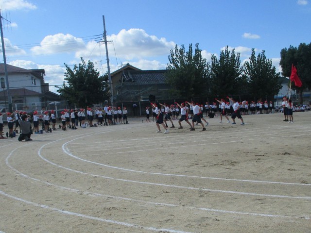 朝会の時間帯から、運動会の全体練習を行いました。