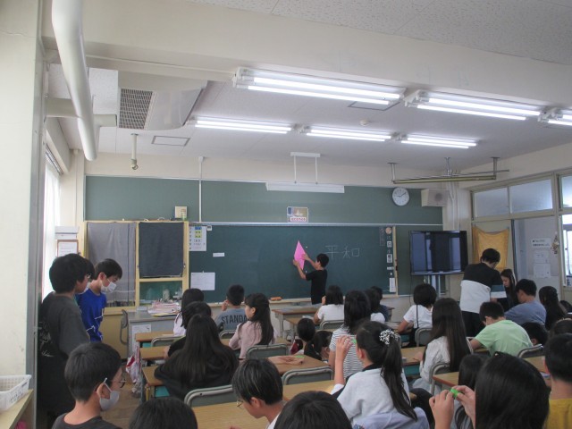 順番に他の学年に行き、おりづるづくりに取り組みました。