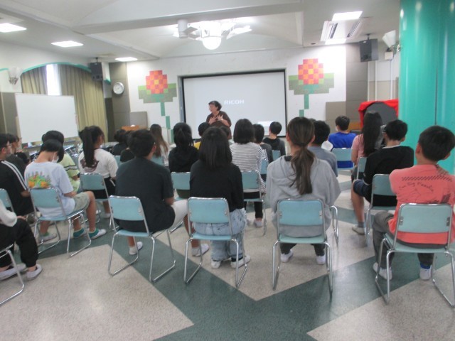 6年生は、広島で被爆された佐伯敏子さんの体験や思いを語ってくださっている中島先生のお話を聞きました。
