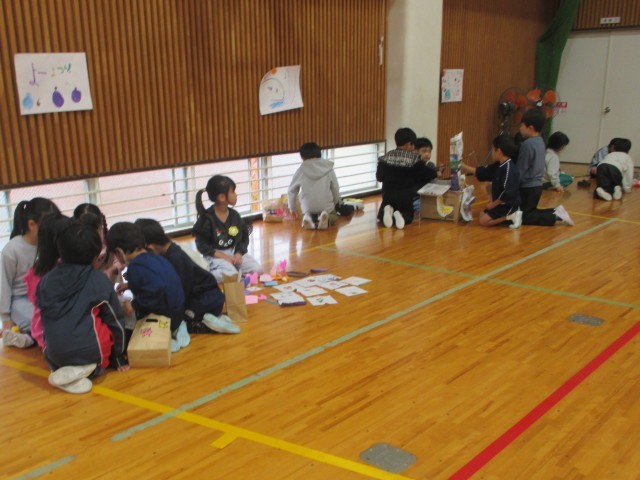 1年生は「あきのおみせ」にひだまりこども園年長さんを招待しました。