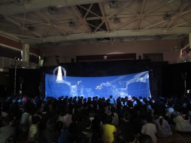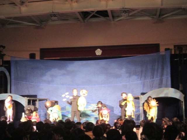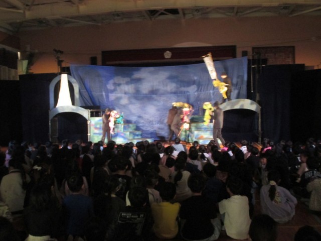体育館で大型人形劇「とどろヶ淵のメッケ」を見ました。