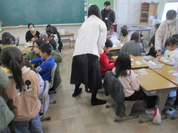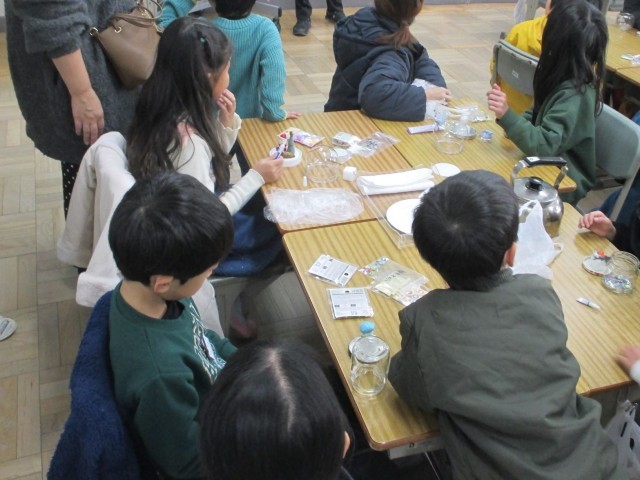 かわいいかざりやキラキラのスパンコールなどを使って、お家の人に手伝ってもらいながら、きれいなスノードームを完成させていました。
