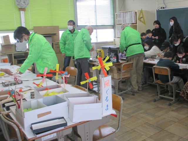 各教室では三宅地区福祉委員会さまによる缶バッジやかざぐるまづくり。