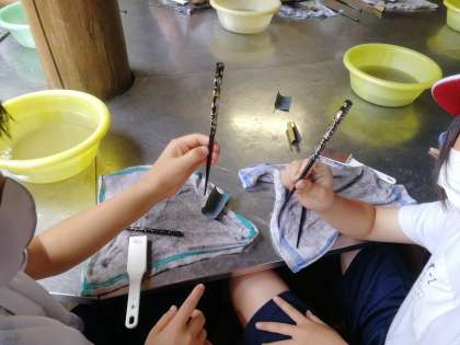 一生懸命に削り続けると、きれいな模様が出てきました。紙ヤスリで仕上げていきます。