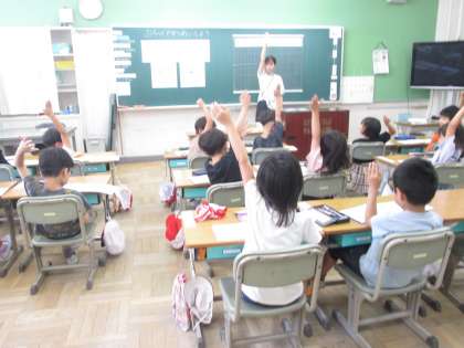 ひきざんの問題にブロックを動かし、ペアでお話しをし合うことで理解を深め式に表していました。