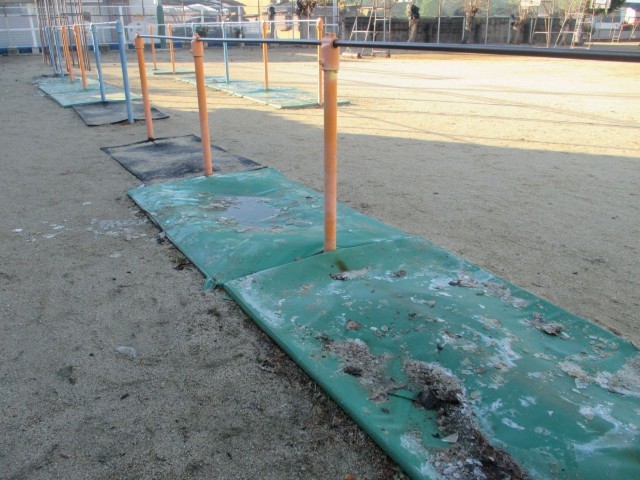 今朝は、とても冷えていて運動場にも氷が...