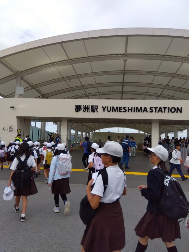 時間通りに夢洲駅から地下鉄に乗り、学校へ戻ります。
