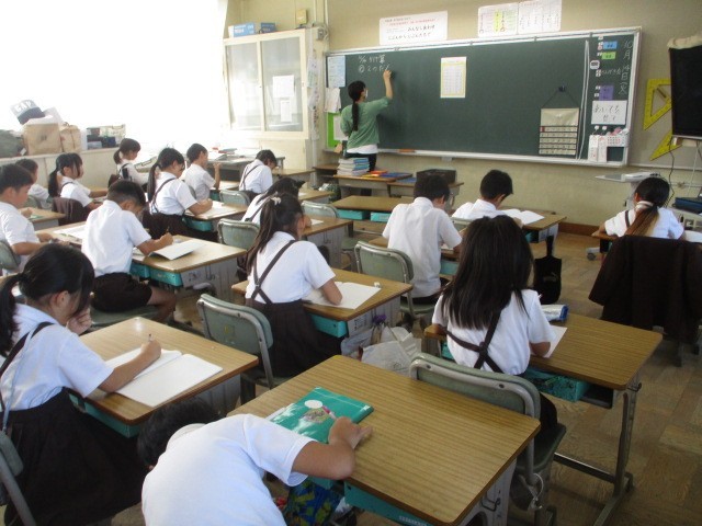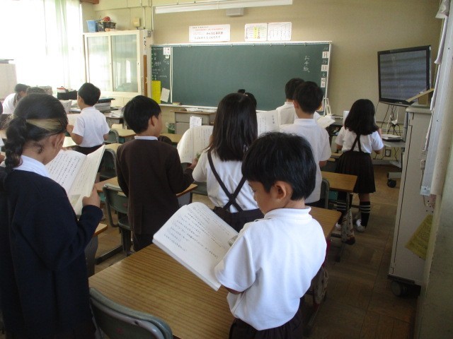 1組は、国語で「お手紙」という物語文を読んでいました。2人1組になって、役割読みをしています。