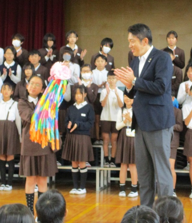 また、今年は松原市役所に集まった千羽鶴を松原市長さんが持ってきてくださりました。
