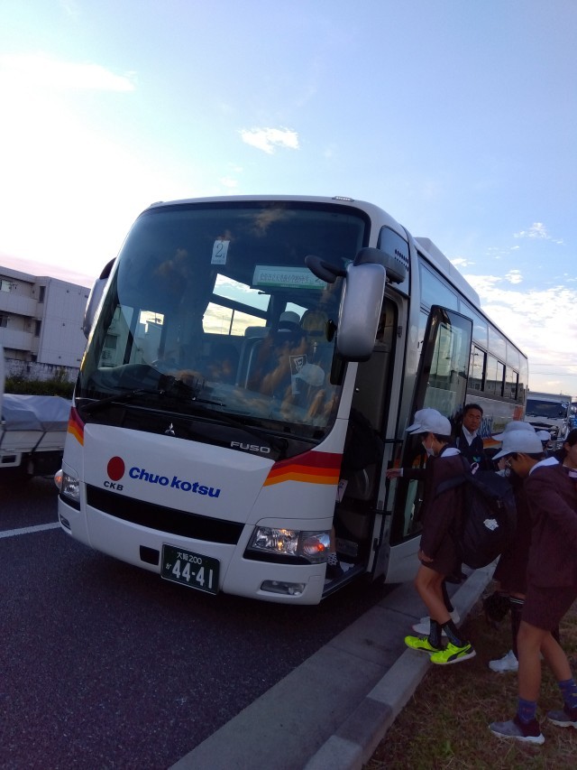 出発式を終え、バスに乗り、新大阪駅へ向かいます。