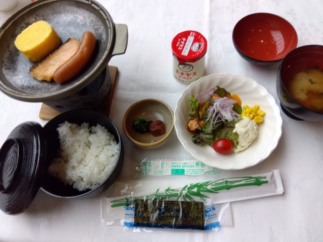 みんなで挨拶をして、朝食を食べています。