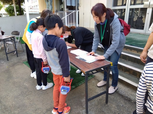 50メートル走やソフトボール投げなどの記録をとっていきます。