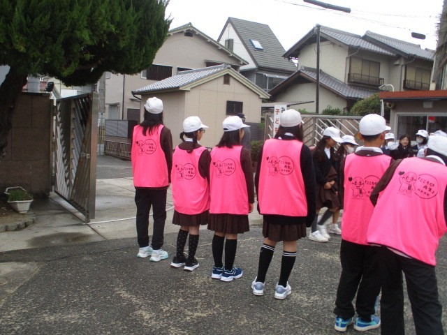 児童会の代表の児童がたくさん校門前に立って、登校した人たちに大きな声であいさつをしてくれています。