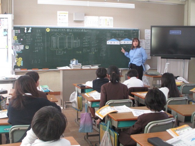 3年生が、算数で「大きな数」の勉強をしていました。