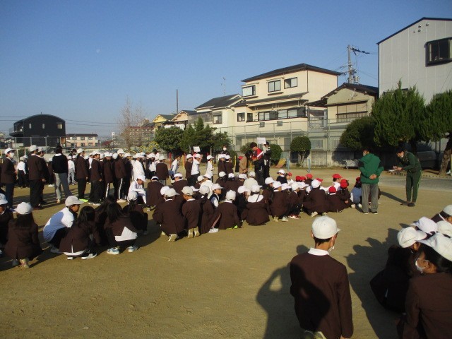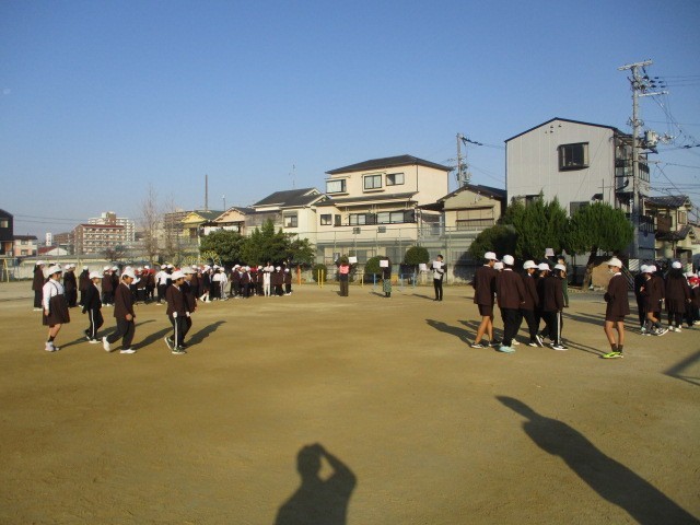 朝会後の時間を使って、集団下校の並び方の練習をしました。