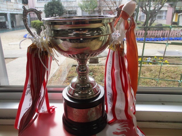 バレーボールチームは、先日の松原市選手権大会で優勝したので、表彰しました。