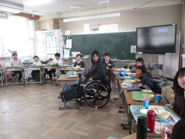 3年生が、福祉学習の一環で、車いすユーザーの方と腕がないため足で様々なことをして生活している方から話を聞きました。