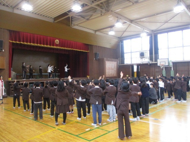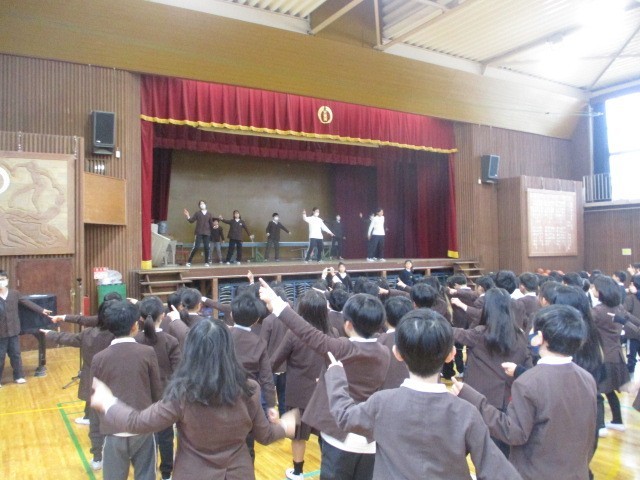 【2月16日(月) 朝会・手洗い健康ダンス】