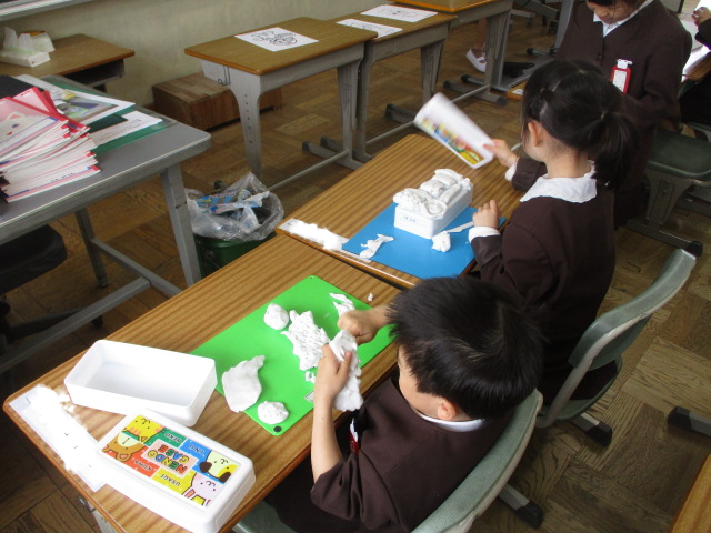 お寿司や恐竜、いろんなものを上手に作る1年生でした。