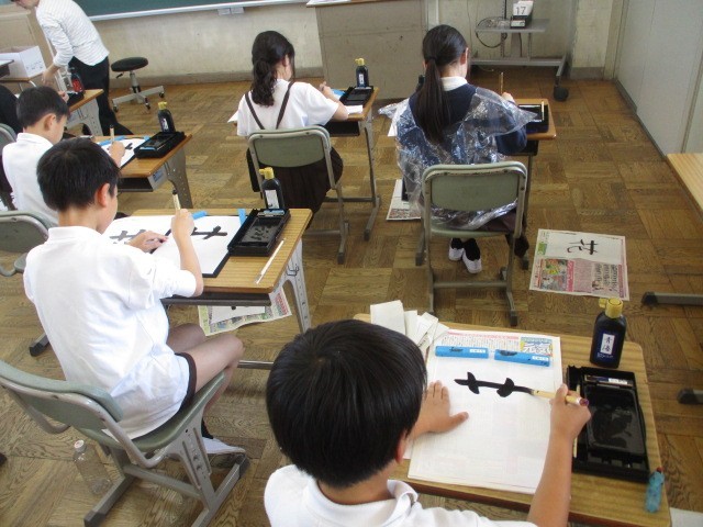 一人ひとりが自分の課題を見つけて、2枚目の半紙に挑戦していました。