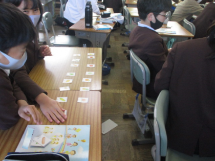 意味を学習した後、カルタをつかって練習しました。カルタをとれたら歓声があがっていて、とても楽しそうでした。