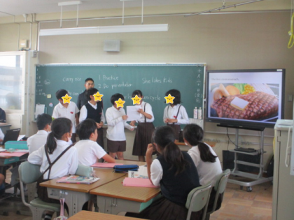 6年生は、前もっていろいろな先生へインタビューして、自分たちで英語でヒントを作ってどの先生のことか当てるクイズをしていました。意外な先生の一面もわかって、楽しそうでした。