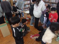 6年生は、1年生がどんぐりを使って一生懸命作った作品や遊びを楽しんでいます。6年...