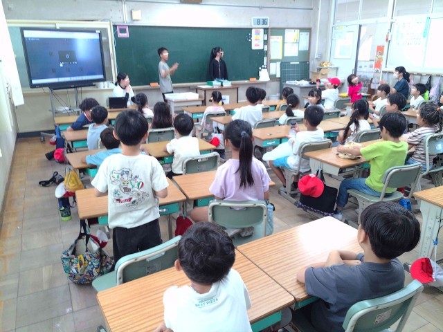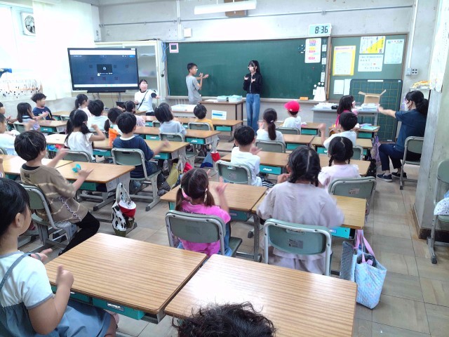 運動会の応援曲に合わせて、振り付けの練習をしています。