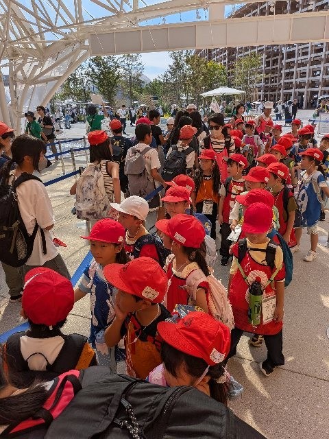 1年生と6年生は、ヘルスセンターパビリオンに入りました。