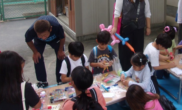いつも大人気のコーナーです。どんぐりゴマ、ヨーヨー、スーパーボールすくいに子どもたちは夢中になって遊んでいました。