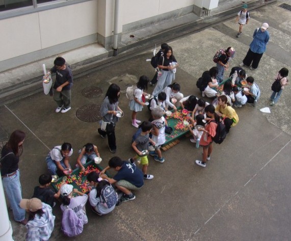 中庭「しげりんと遊ぼう・むかし遊びコーナー」