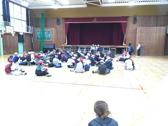 5年生は出発式の後、神戸市立自然の家に向けて元気いっぱいで出発しました。