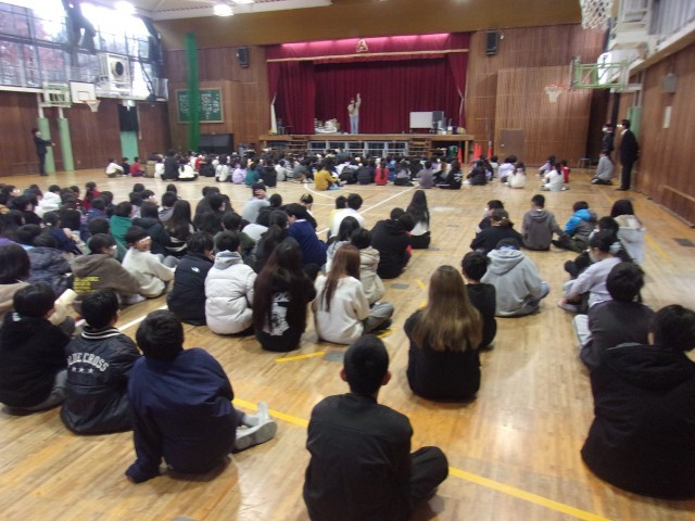 最後に冬休みの生活について、劇団天西の団員による素晴らしい演劇が行われました。