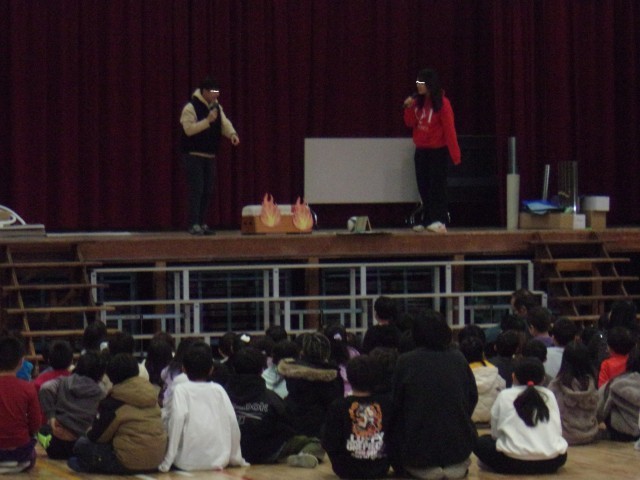 アクション、そして、感動の場面が次々と演じられ、子どもたちは心から感動していました。
