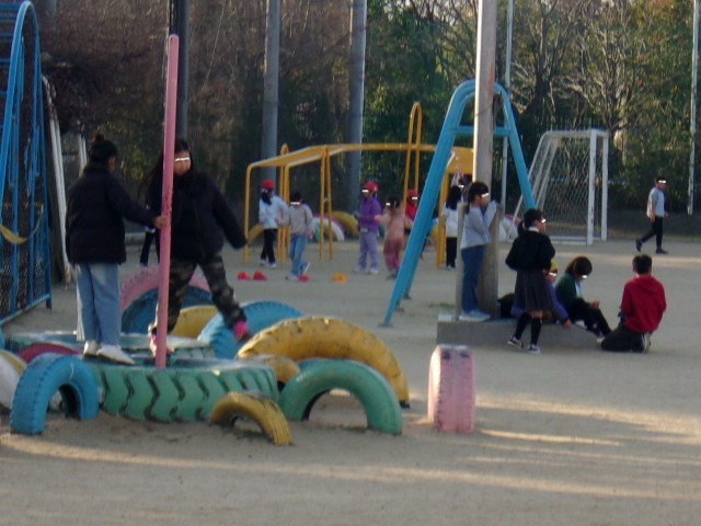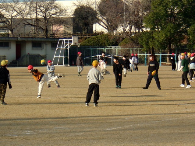 朝の運動場では、ドッジボール・サッカー・なわとびなど、楽しく過ごしています。