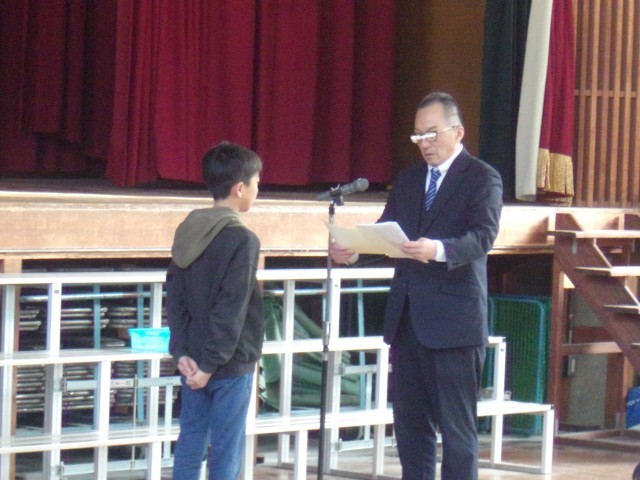 今日は、児童朝会で