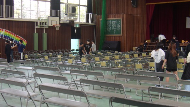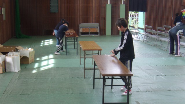 シート張りやイスだし等、黙々と手伝ってくれています。