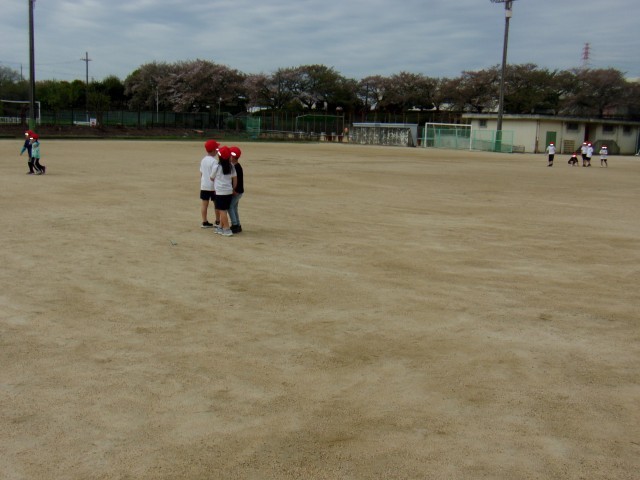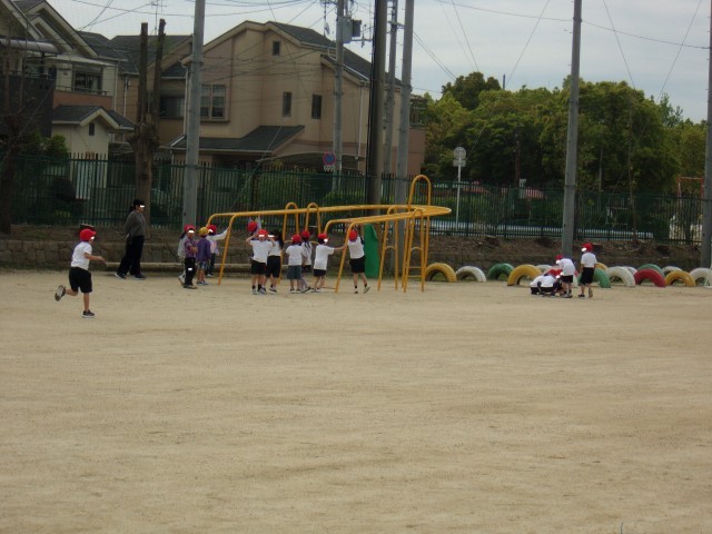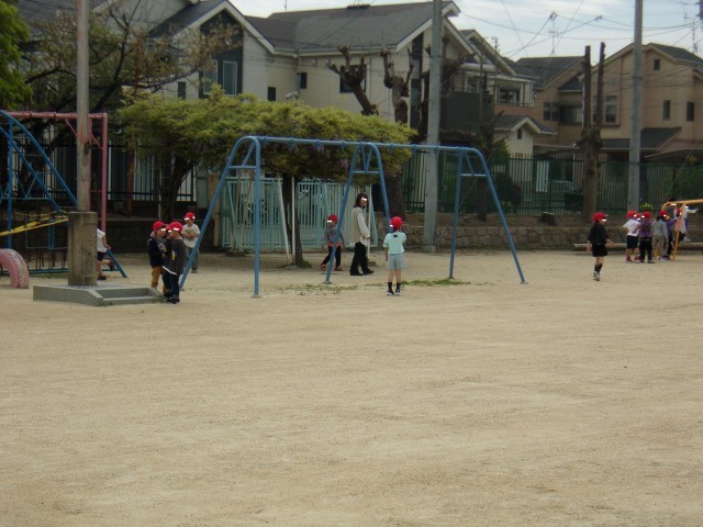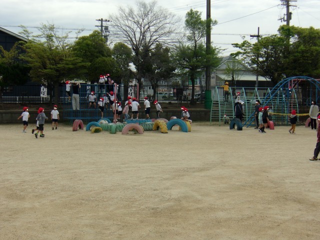 1時間目の1年生は運動場にいます。