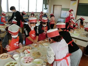 パンづくりには、思った以上に力が要る場面もありましたが、班で声を掛け合いながら取り組みました。パンのミミを利用したサラダも、なかなか好評でした。食の大切さと楽しさを教えていただきました。