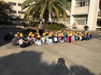 5年生は出発式の後、神戸市立自然の家に向けて元気いっぱいで出発しました。