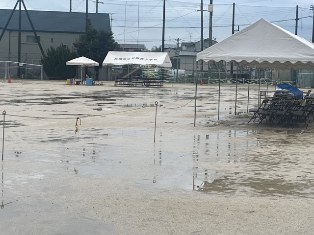 やんでおくれ 公開日 2025/10/04 更新日 2025/10/04 校長より 午後14時ころの運動場です。しとしとと降る雨が続きました。「もうそろそろやんでおくれ」。様子を見に来られた先生たちと願い続けています。子どもたちの晴れ姿を、明日見ていただけますように。そう思っていると、明日の雨の時刻が少し後ろにずれました。できますね。できますよ、きっと。