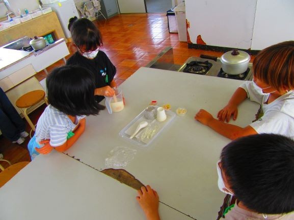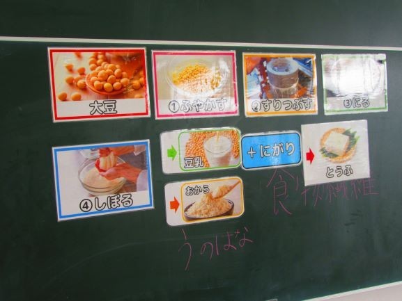 とうふづくり 公開日 2025/10/16 更新日 2025/10/16 校長より 3年生が外部講師をお招きして「とうふづくり」。国語で「すがたを変える大豆」という学習の発展として取り組みました。「大豆をしぼってできたこのお汁は何ていうの?」「牛乳!!」(うーん、ちょっとちがうねえ。)「豆乳になにかを入れてまぜると固まるよ!なーんだ」「牛乳!!」(・・・。)最後はつくったおとうふを食べたようです。おいしかったかな?