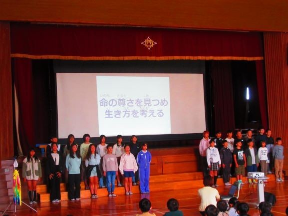 その後、全校で折った千羽鶴を披露してくれ、「折り鶴」の歌を素敵な歌声で歌ってくれました。